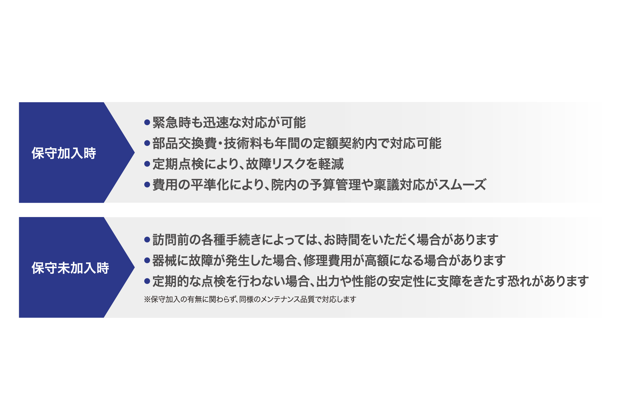 医療機器を安定してご使用いただくために、保守契約をおすすめしております。