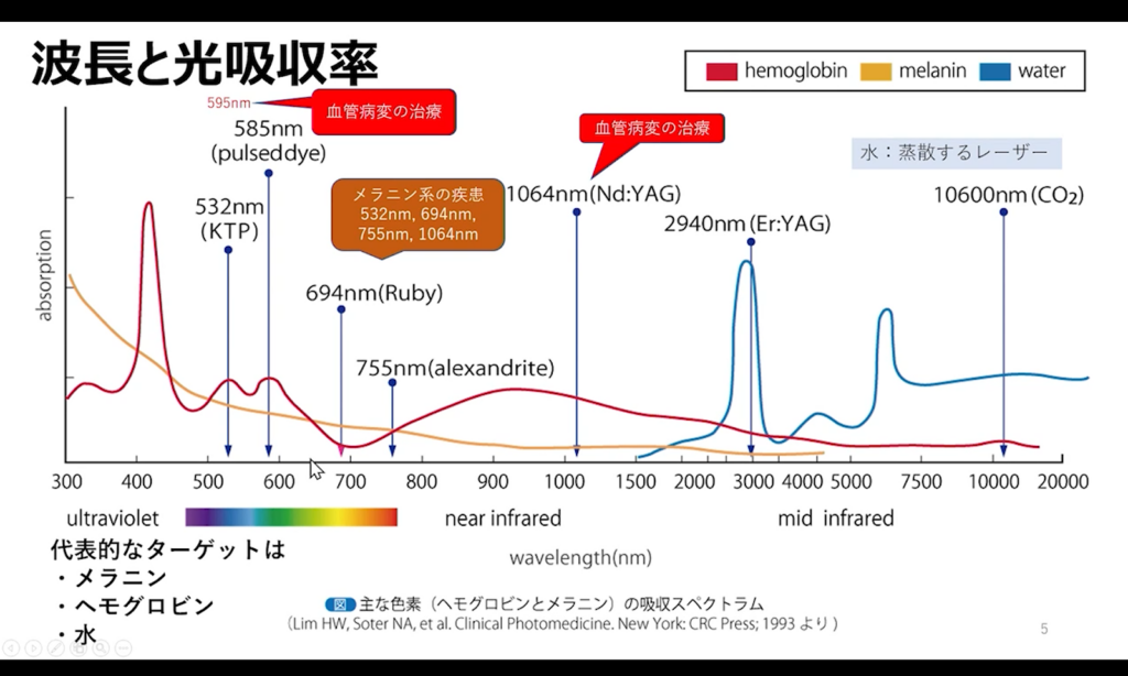 Qスイッチレーザーの基本となる波長特性、吸収特性、サーマルリラクゼーションタイム(TRT)といった概念を整理し、レーザー選択や照射条件を考えるうえで重要となる判断軸について解説します。また、保険診療領域と自由診療領域におけるレーザー活用の考え方の違いや、肝斑治療の最新理解とレーザーの位置づけについても触れ、日常診療や研究を見直すための視点を共有します。